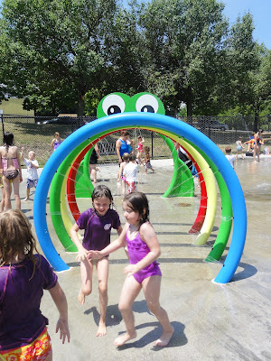 Last week we were able to go to the Splash Park with some new friends from our apartment building. It was 85 degrees, but the kids were complaining about it being cold! Poor Arizona kids! But, they had a fun time. We went over to the 'regular' park after they'd had their fill at the splash park.